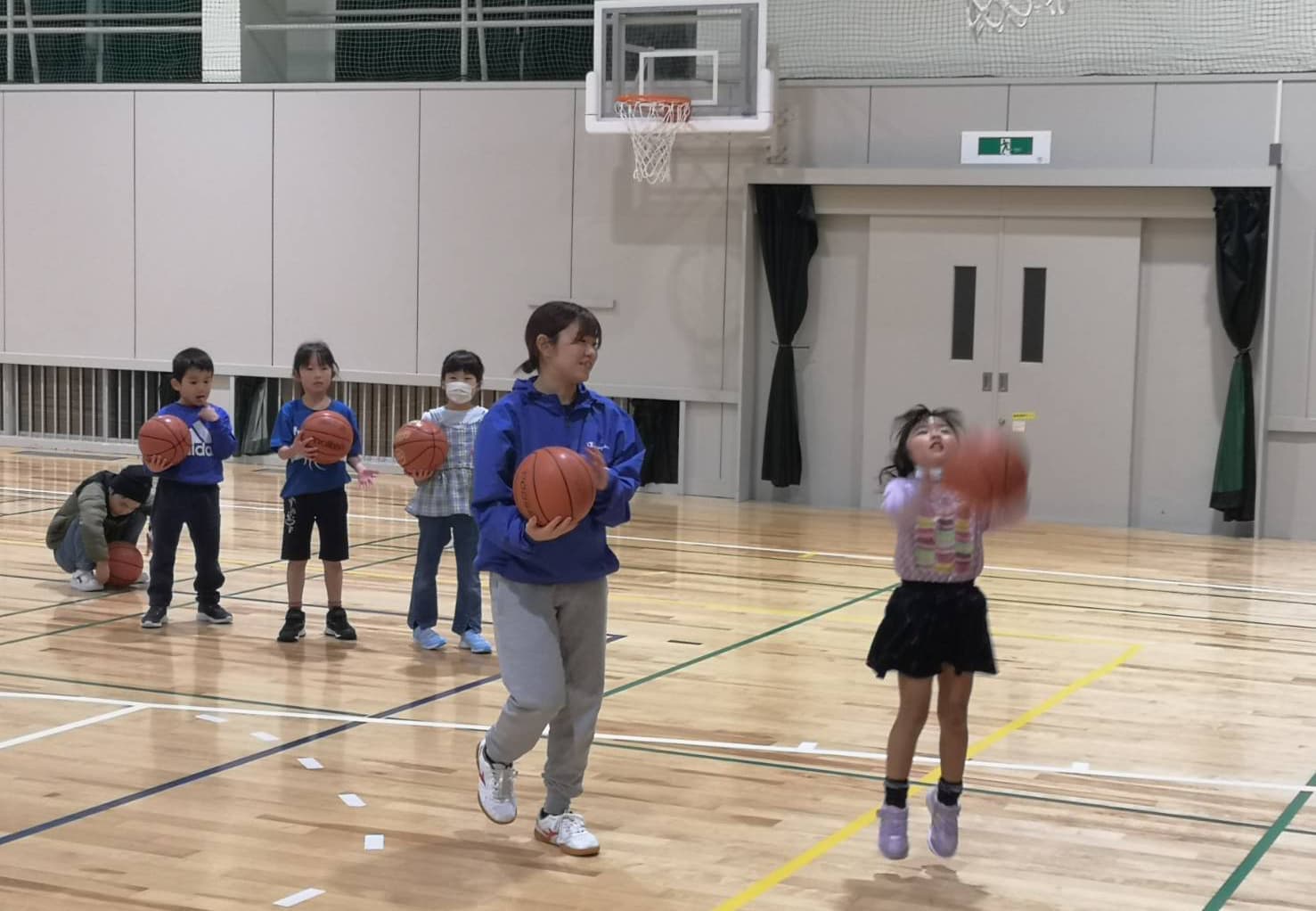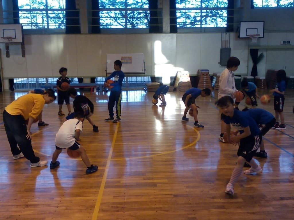 バスケットボールに必要な走・跳・投運動はもとより、スポーツ科学を基礎にしたトレーニングによって身のこなしや身体調整力を育み、仲間との協調的な活動を通して丈夫な体と心を身につけ、ボールゲームの楽しさを学べるように指導します。